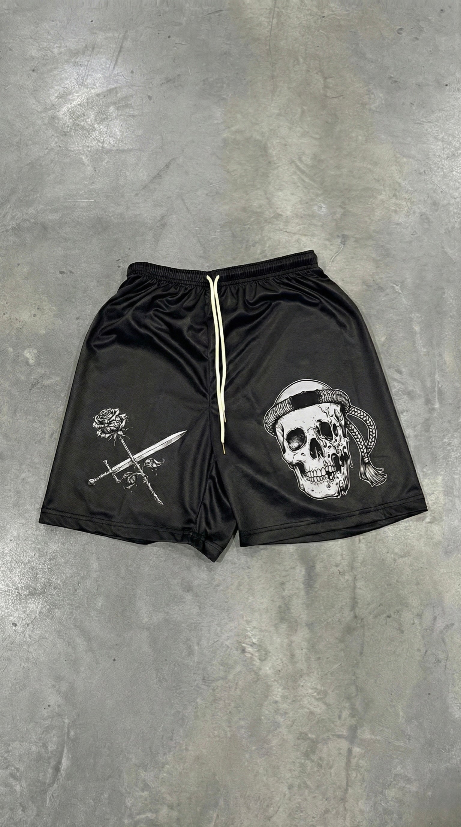 CHAOS Kickboxing Shorts blend performance with purpose. Engineered from breathable polyester & cotton, these shorts deliver comfort and mobility through intense training sessions and competition. The design features symbolic artwork a decaying rose and sword capturing life's relentless movement, while a melting skull embodies the mental fortitude required to endure combat. Built for Muay Thai, kickboxing, and mixed martial arts, these shorts keep you focused on what matters: staying in the fight.