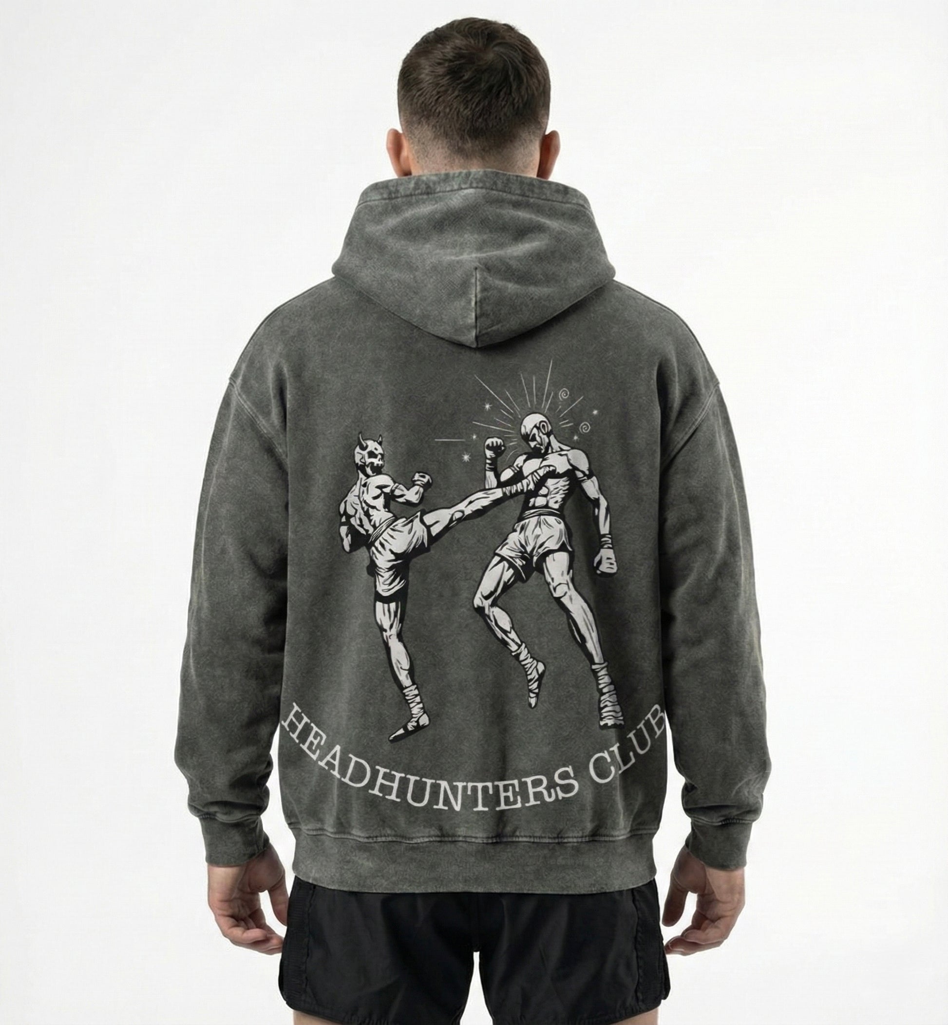 Heavyweight cotton Hoodie construction built for durability and comfort. The back features a striking demon illustration delivering a decisive headkick, a visual metaphor for embracing your complete self, including the shadow aspects that drive real power. This design embodies a philosophy: recruit every part of yourself to cut through noise and land the knockout, whether in the ring or in life. For those who understand that true strength comes from integration, not denial.