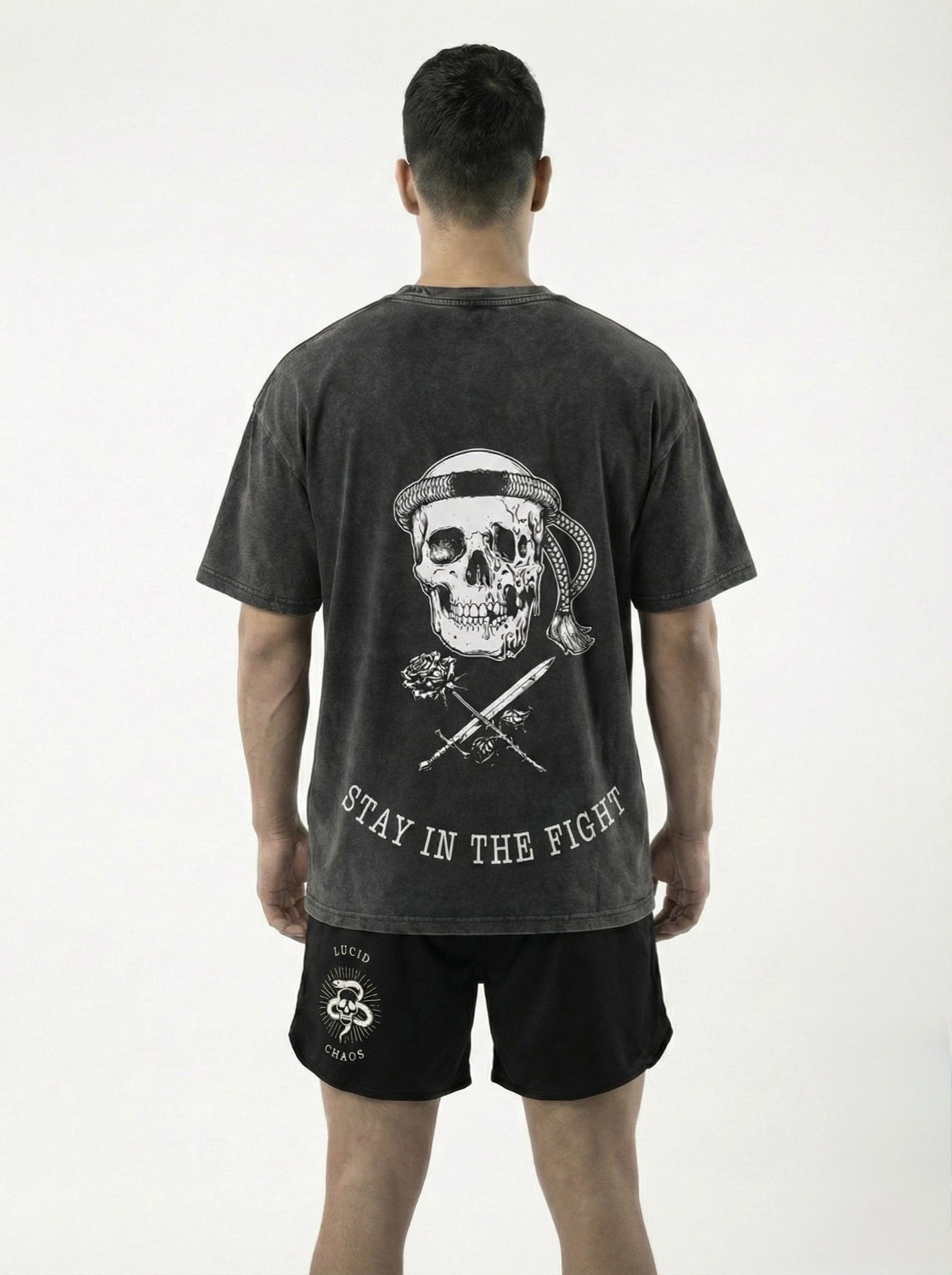 For members of the Striking club, this heavyweight cotton tee delivers durability and meaning. The back graphic embodies the club's ethos: staying mentally and physically present, no matter the challenge. STAY IN THE FIGHT isn't just a slogan, it's a reminder that tenacity separates those who persist from those who quit. Wear it as a badge of commitment to showing up, every single day.